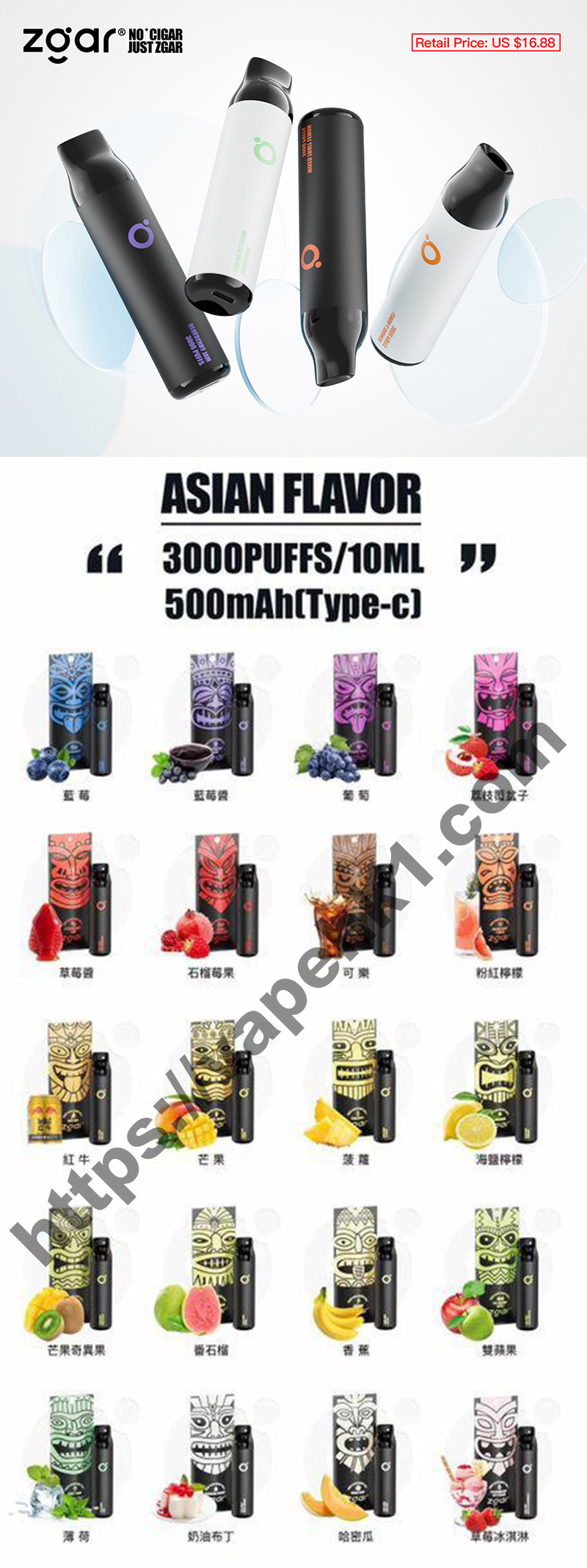 - 口味:蜜露|布丁奶油|香蕉|檸檬水|菠蘿|芒果|紅牛|薄荷|冰雙蘋果|芒果獼猴桃|番石榴|藍莓|藍莓果醬|葡萄|可樂|荔枝樹莓|番石榴漿果|雜果檸檬|草莓醬|草莓冰淇淋